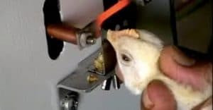 Kukata midomo (beak trimming): Kuku wanaodonoa wenzao wanaweza kukatwa midomo yao upande wa juu (tazama picha) ili kuzuia wasidonoe wenzao. Ukataji unaweza kufanywa na wembe mkali au kisu kilichochomwa na moto, uwe makini usimchome kuku au wewe mwenye. Kwa kuku wadogo ili wasijedonoana baadaye, midomo ikatwe wakiwa na siku 10 na au wiki 10 – 12. Njia hii haishauriwi kwa kuku wadogo hasa kama njia nyingine za kuzuia zinaweza kufanywa na mfugaji. Hivyo ni vema ukakinga kuku wako kwa kuwapa chakula na maji kwa nafasi.